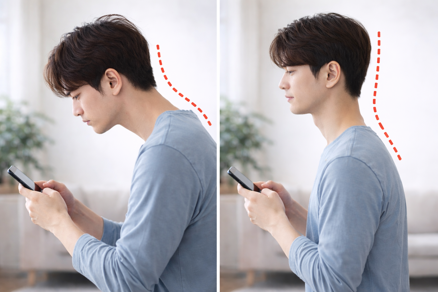 턱을 당기고 시선을 정면으로 향하는 습관, 오늘부터 시작해 보시는 건 어떨까요?