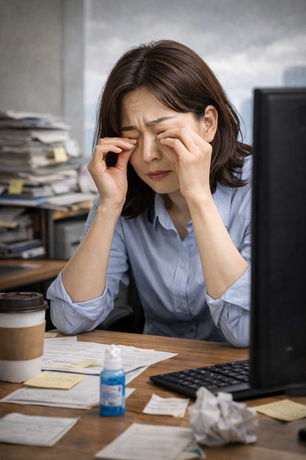 인공눈물을 넣어도 10분이면 다시 뻑뻑해지고, 저녁만 되면 눈이 충혈되어 거울을 볼 때마다 놀랐던 적이 한두 번이 아니었습니다. 안구건조증이 이렇게 일상을 방해할 줄은 몰랐습니다.